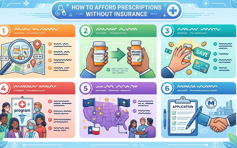 You can afford prescriptions without insurance by requesting FDA-approved generics, using free discount programs like NuLifeSpan Rx, joining $4 pharmacy programs, applying for patient assistance, and ordering 90-day supplies through mail-order pharmacies. These strategies combined can reduce your costs by 30 to 80 percent immediately.