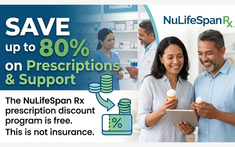 The NuLifeSpan Rx prescription discount card is accepted at over 35,000 pharmacies nationwide and works on thousands of prescription medications, including veterinary insulins. It is completely free, requires no registration, and never expires.